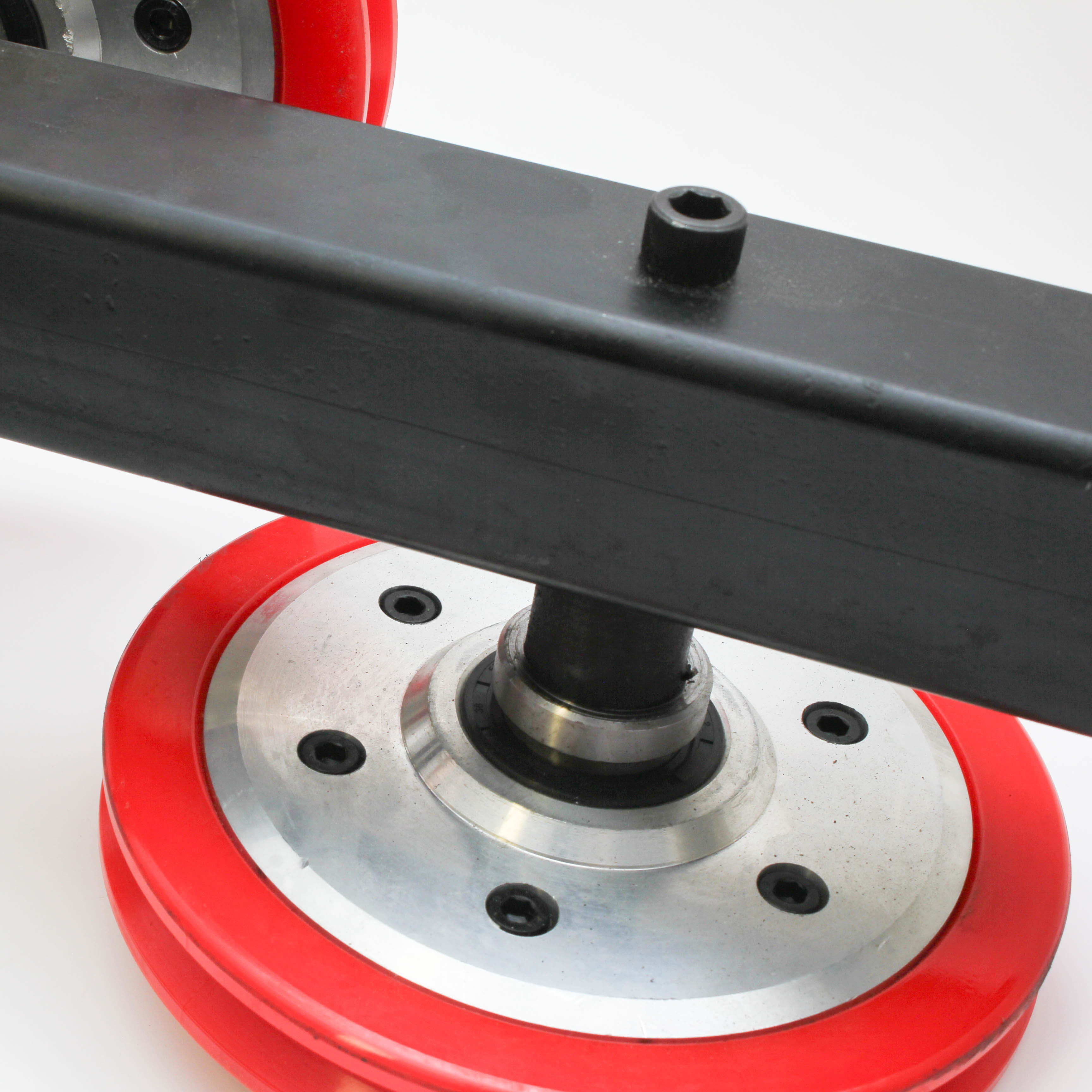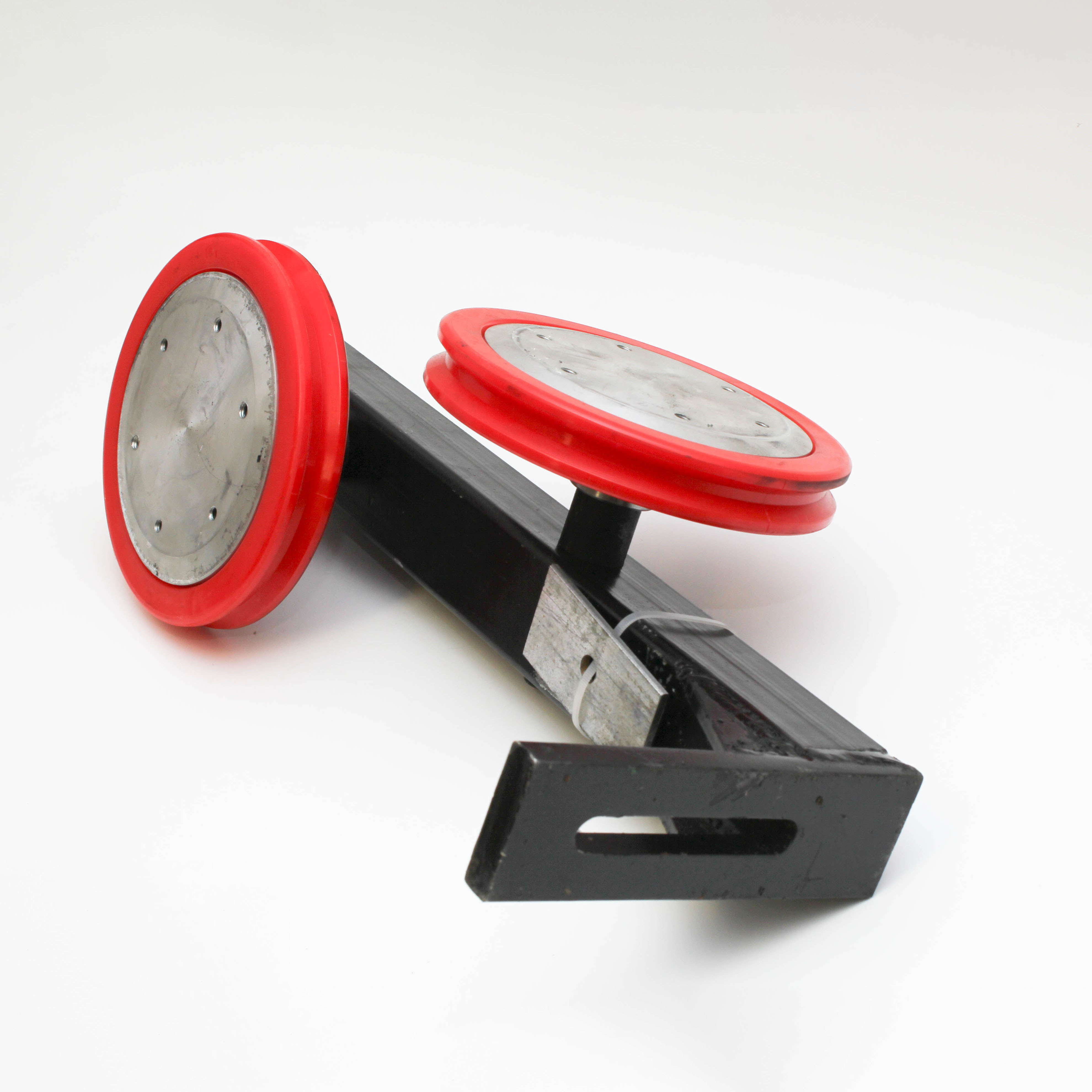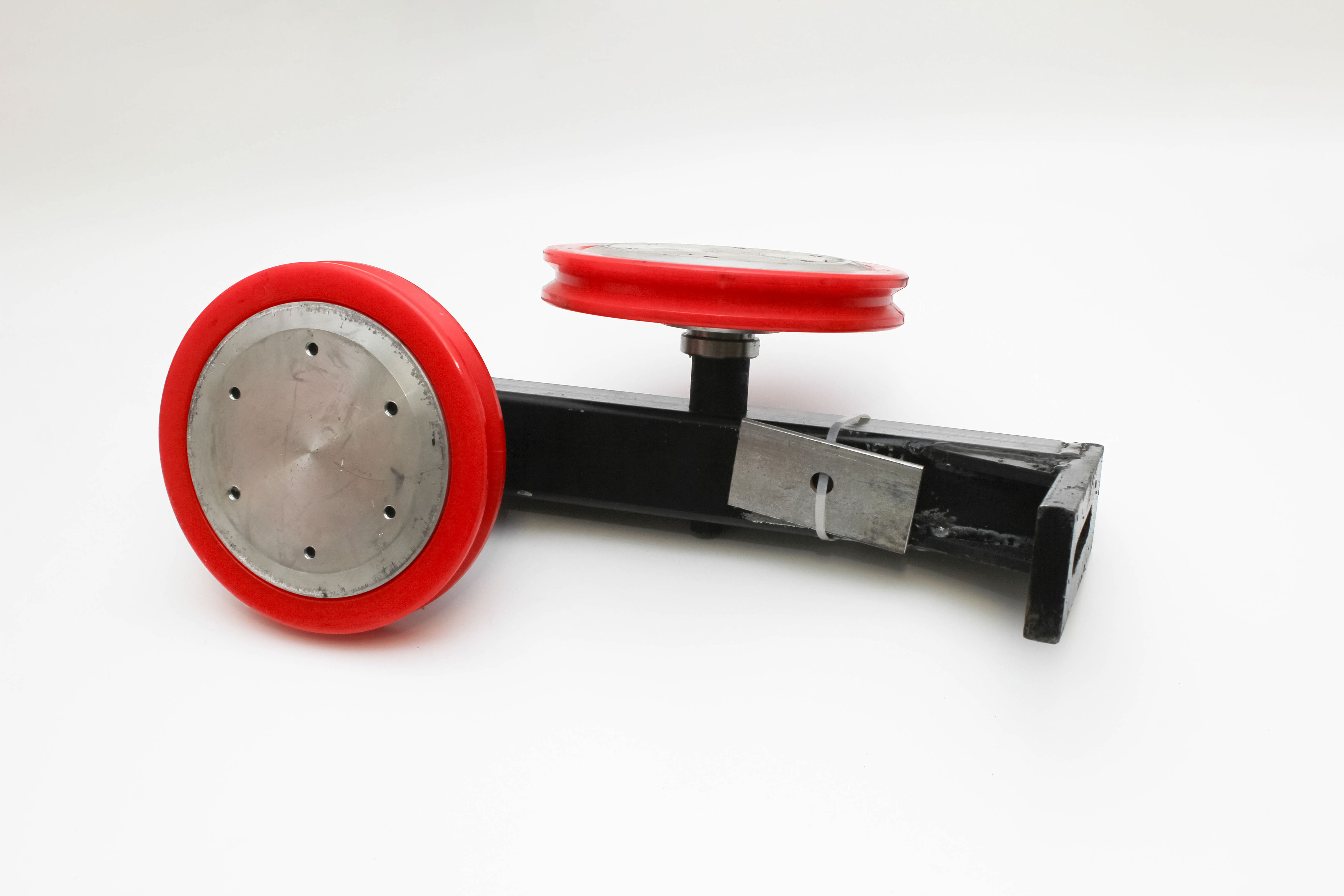 Блок направляющих колес состоит из двух направляющих колес, установленных на раме. Крепится к конструкции, которая подвергеется демонтажу, для изменения направления и правильной подачи алмазного каната на рез.