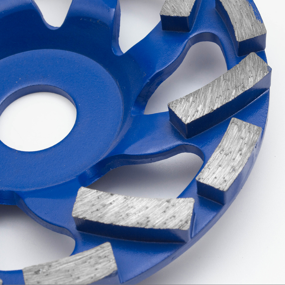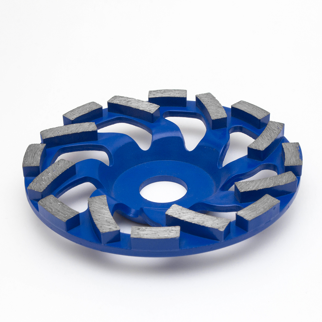 Чашка алмазная для шлифовки бетона турбо сегмент, то есть, алмазные сегменты расположены по окружности чашки в хаотичном порядке (смотрите фото).