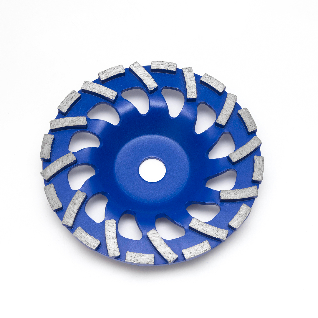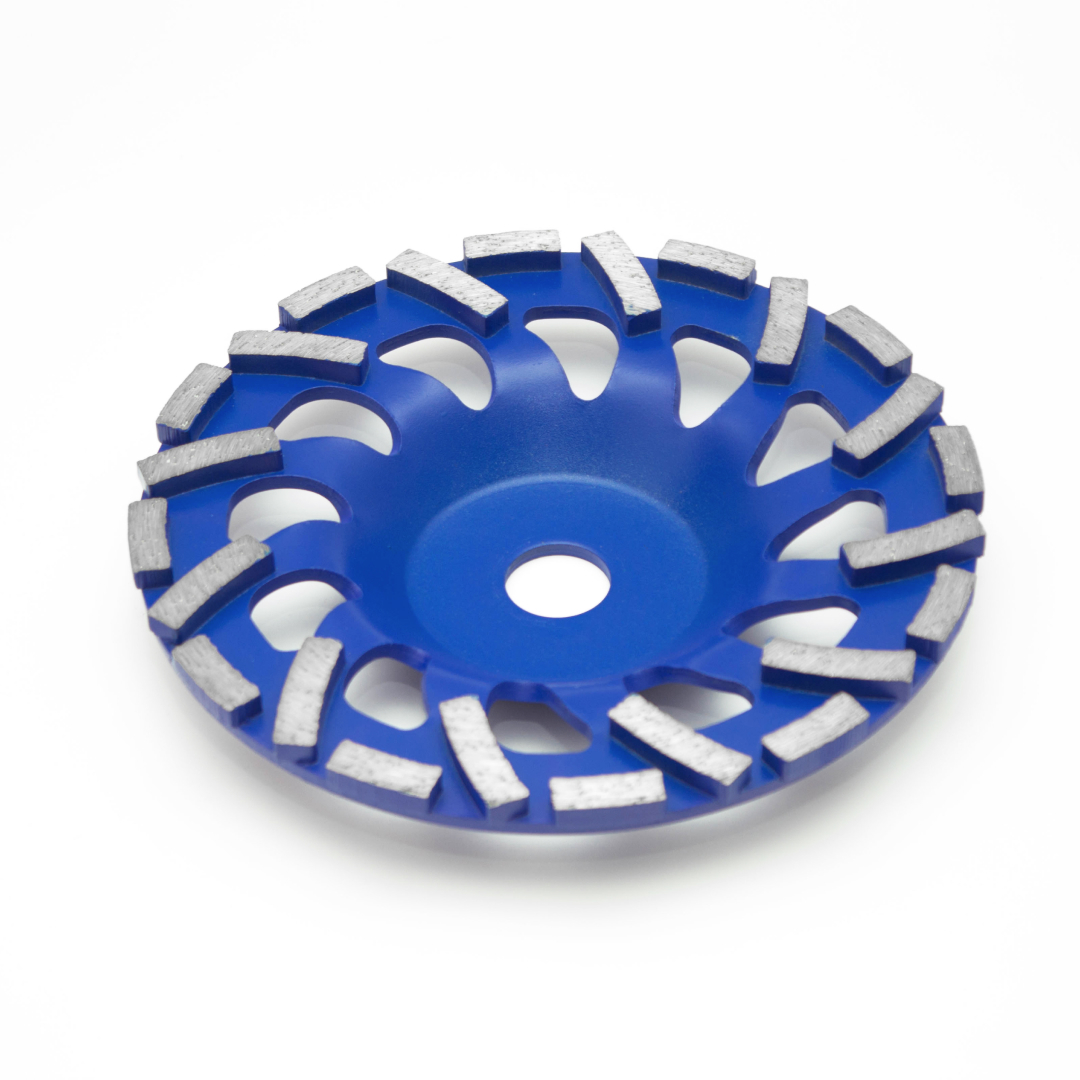 Чашка алмазная для шлифовки бетона турбо сегмент, то есть, алмазные сегменты расположены по окружности чашки в хаотичном порядке (смотрите фото).
